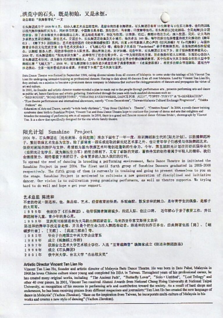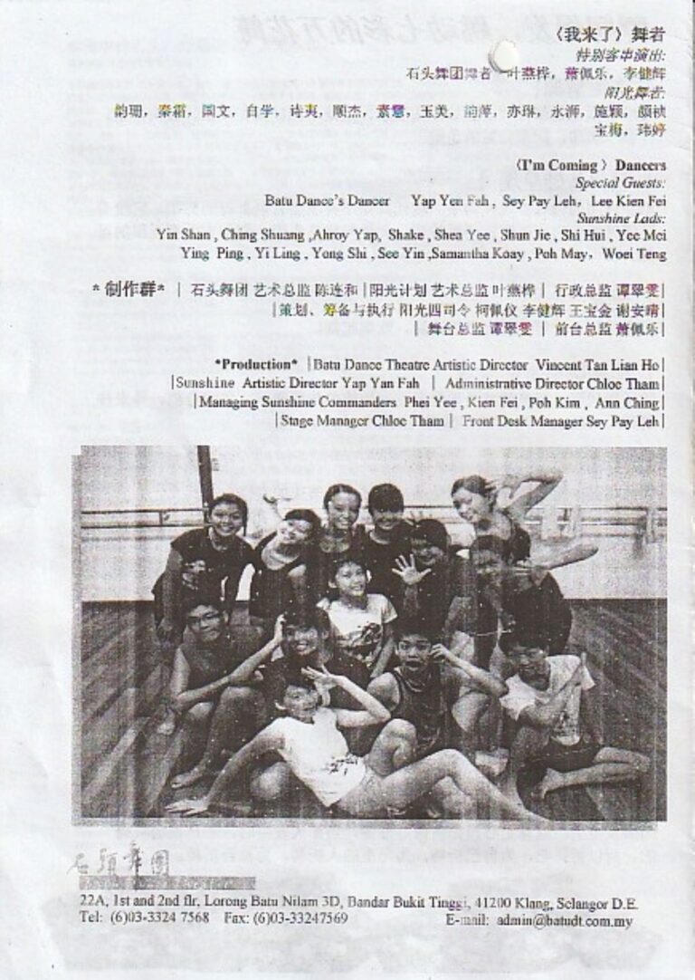 - Production / Presenting Company:Batu Dance Theatre & Sunshine Project 5th Anniversary