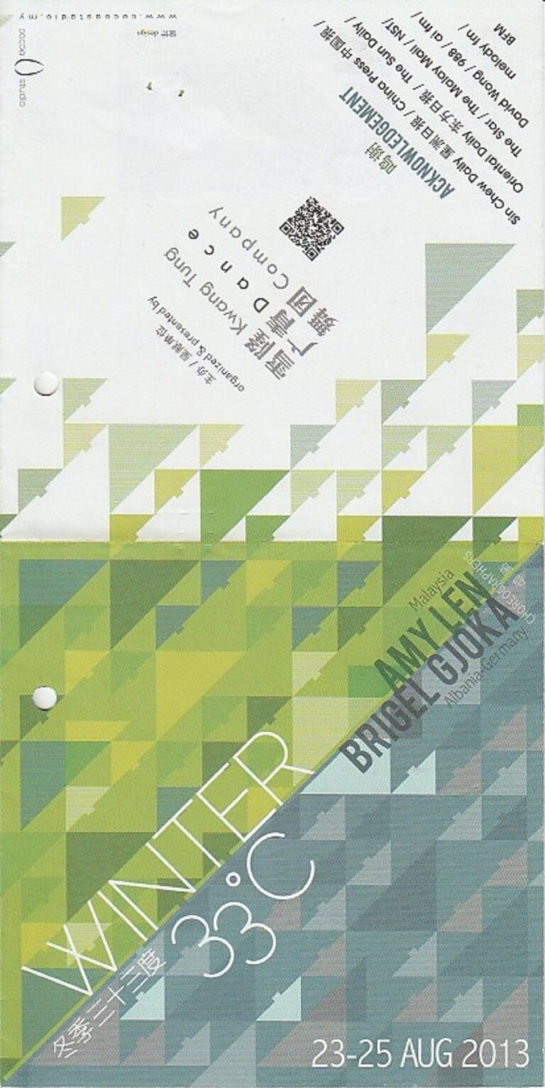 Winter 33°C is essentially about life – our experiences and memories that leave a lasting impression, and the different interpretations of the world around us. With two choreographers from vastly diverse backgrounds and influences, Winter 33°C will be a juxtaposition of East and West. It will highlight both their distinctive styles, which are contrasting yet complimentary.