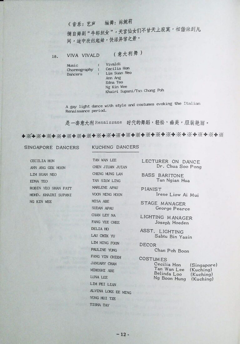 Pianist: Irene Liow Ai MuiCostume Designer: Cecelia Hon (Singapore), Tan Wan Lee (Kuching), Belinda Loo (Kuching), Ng Boon Hung (Kuching)
