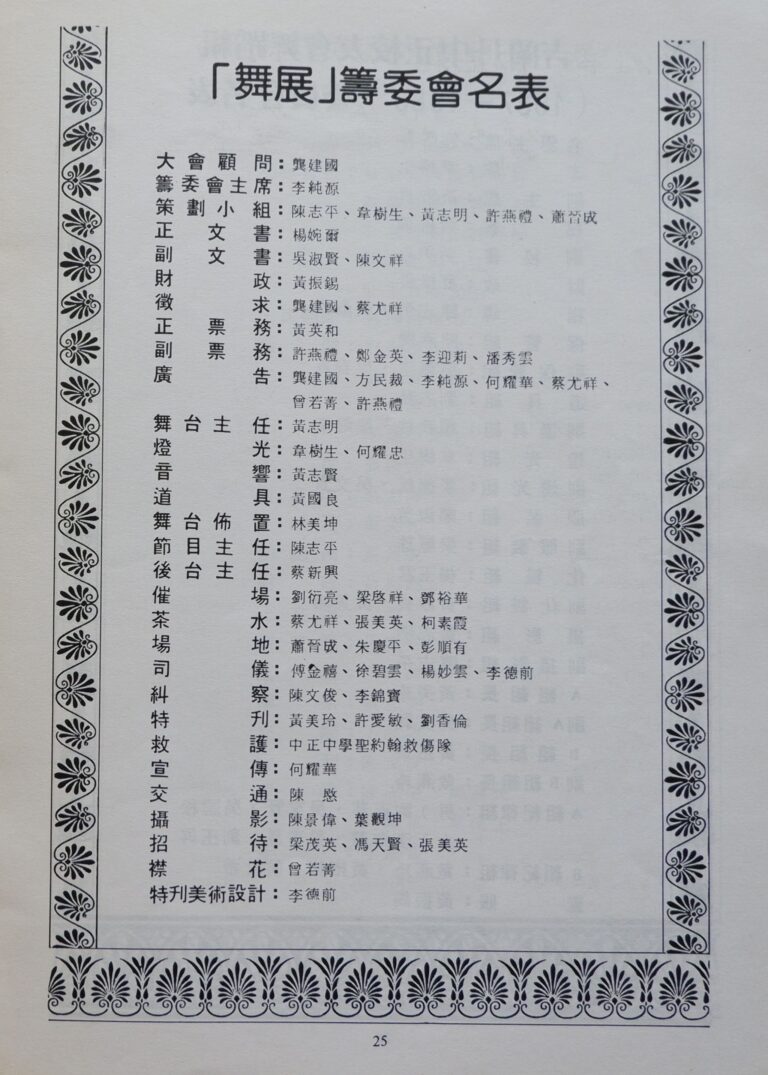 - Pengurus Pentas:舞台主任: 黄志明 后台主任: 蔡新兴 催场: 刘衍亮、梁启祥、邓裕华。