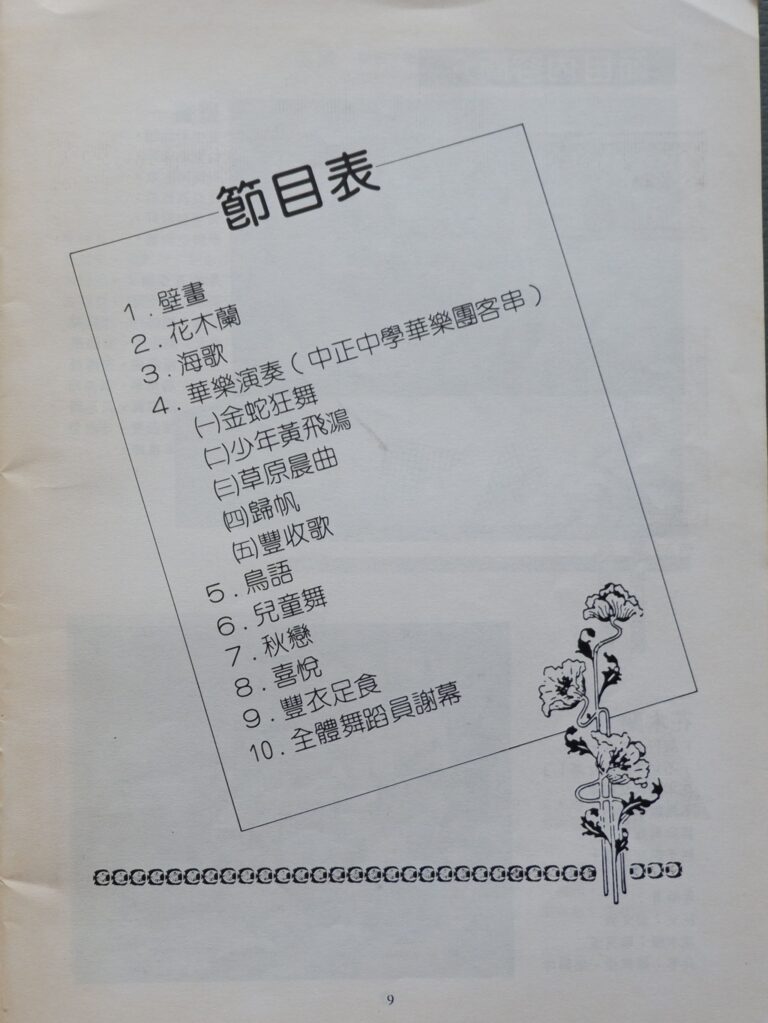 - Penari:许爱敏、戴燕玲、胡佩佩、侯汶希、洪艺萍、骆美美、蔡若荪、李宝玉、黄彬彬。