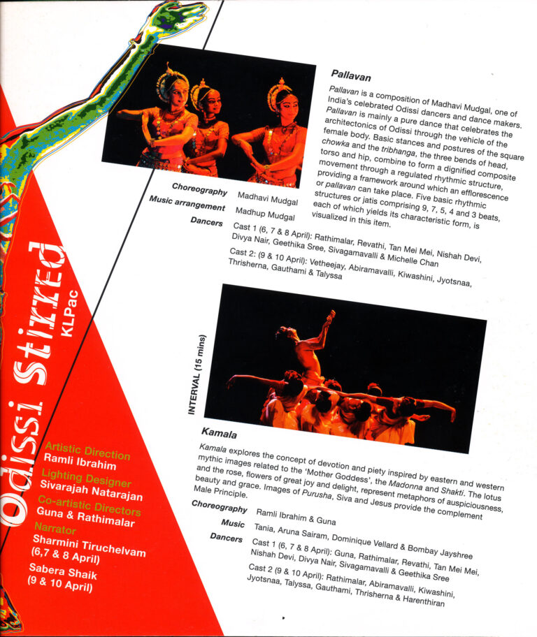 - Penari:Cast 1 (6,7 & 8 April): Rathimalar, Revathi, Tan Mei Mei, Nishah Devi, Divya Nair, Geethika Sree, Sivagamavalli, Michelle Chan Cast 2 (9 & 10 April): Vetheejay, Abiramavalli, Kiwashini, Jyotsnaa, Thrisherna, Gauthami, Talyssa