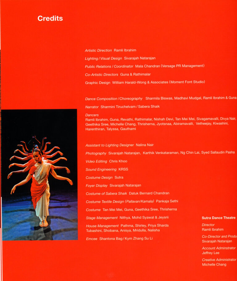 - Pengarah Seni / Kurator / Koordinator Program:Ramli Ibrahim Co-Artistic Directors: Guna, Rathimalar Govindarajoo