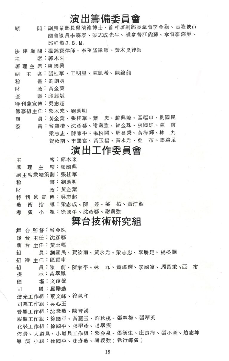 - Pengurus Pentas:Chan Kim Choo 曾金珠