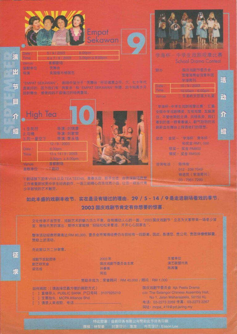 - Tempat Pementasan:MCPA Theatre, The Kuala Lumpur & Selangor Chinese Assembly Hall