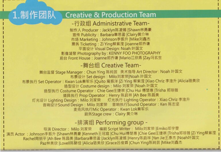 - Pengurus Pentas:Chun Ying 陳純芸