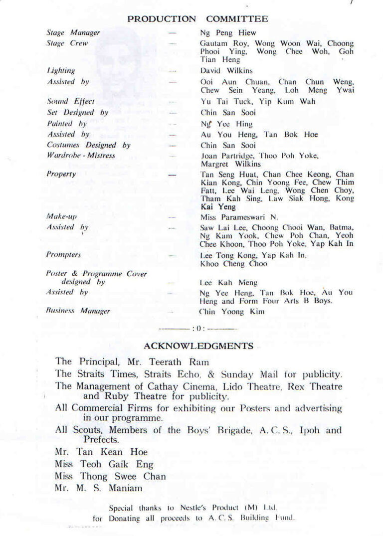 Persatuan Drama Selokah Anglo Chinese (A.C.S.) Ipoh mempersembahkan King Lear