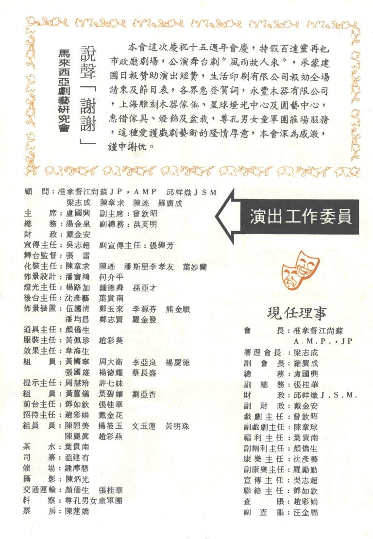 - Pengurus Pentas:張雷 (Zhang Lei)