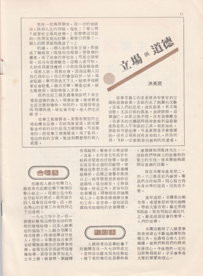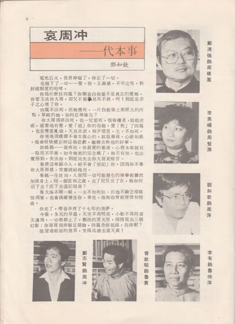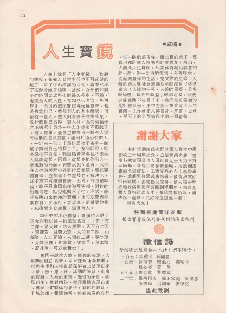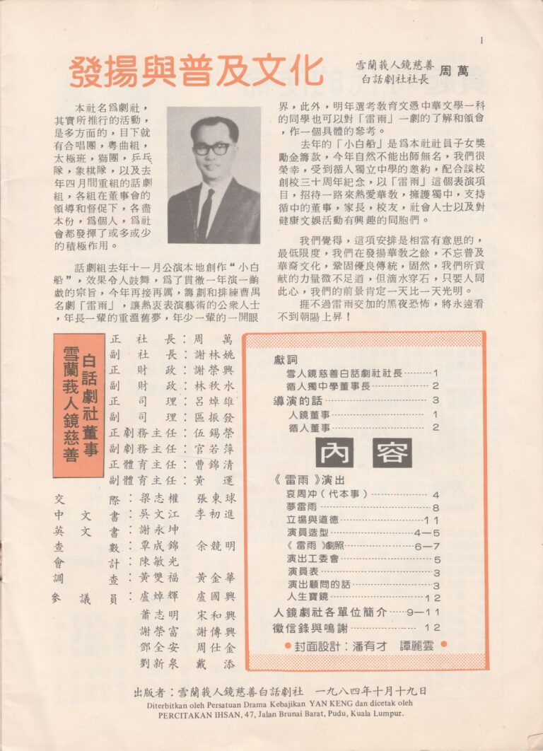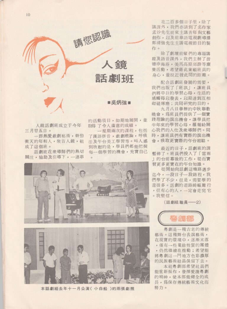- Nama Kumpulan:Yan Keng Benevolent Dramatic Association 人鏡白話劇社