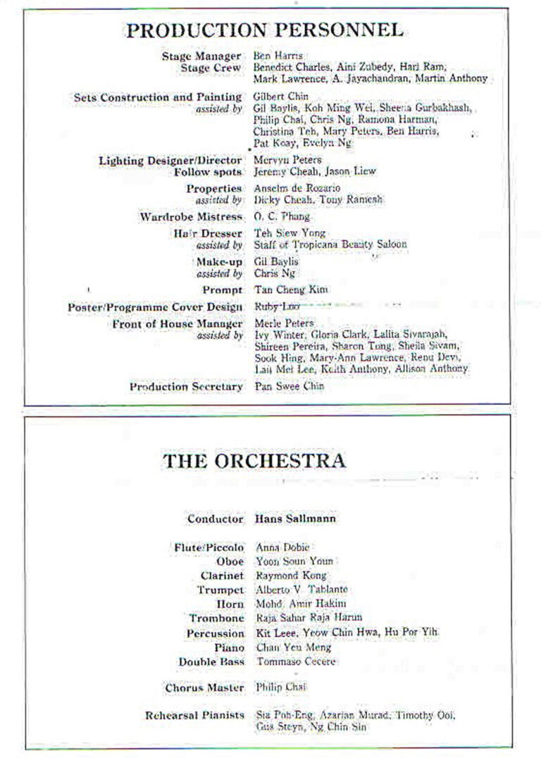 • Pengarah Muzikal:Hans Sallmann