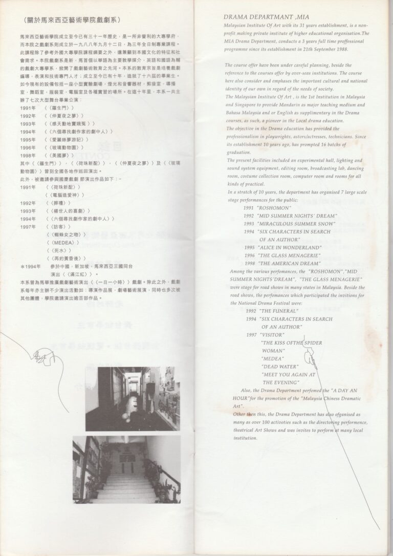 - Nama Kumpulan:Malaysian Institute of Art Drama Department 馬來西亞藝術學院戲劇系