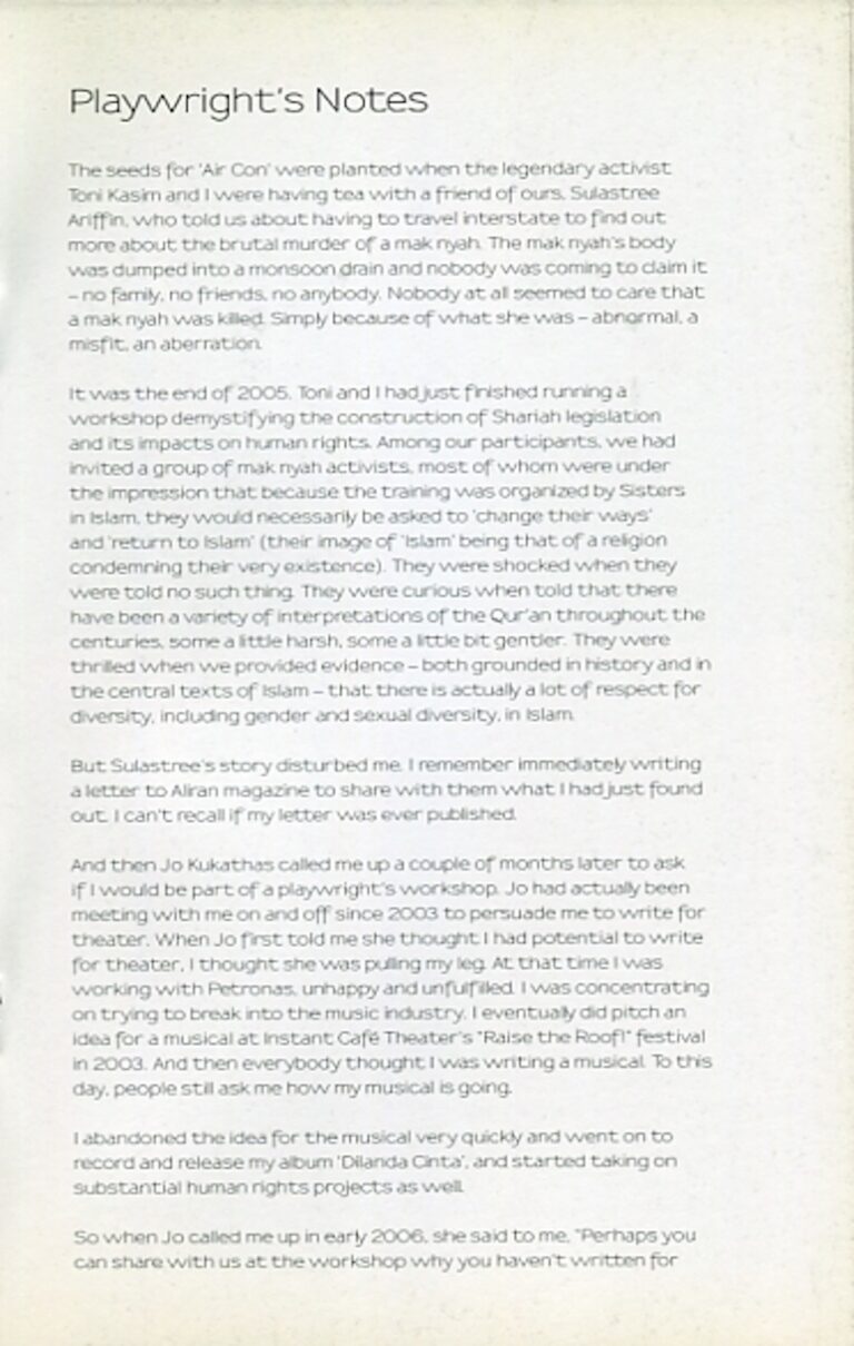 • Tempat Pementasan:Pentas 2, Kuala Lumpur Performing Arts Centre