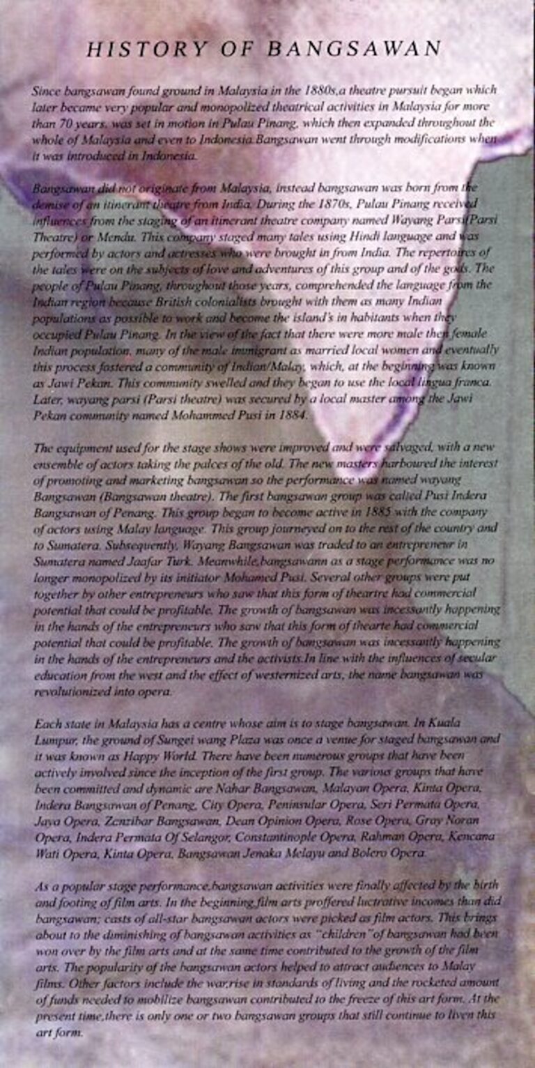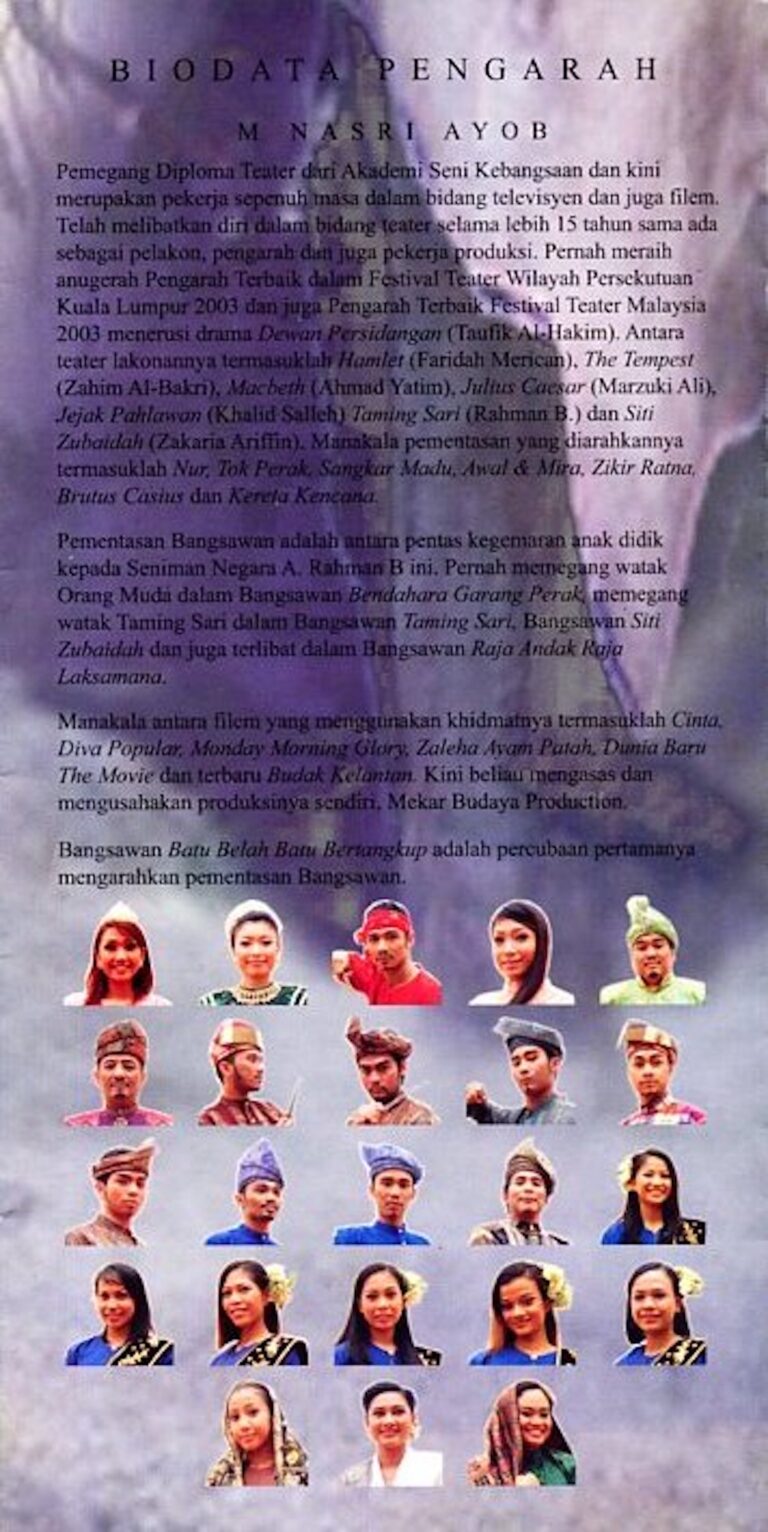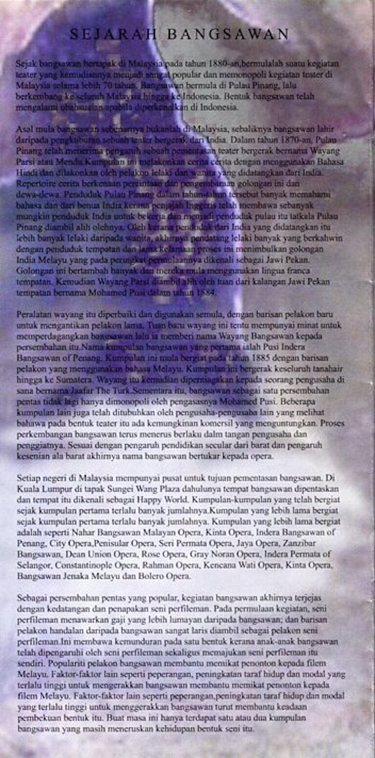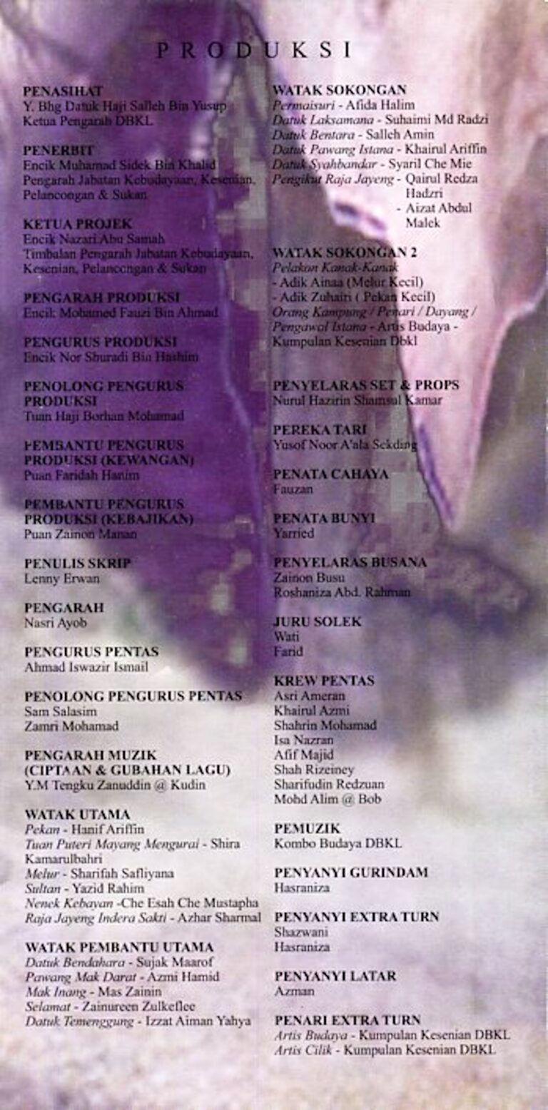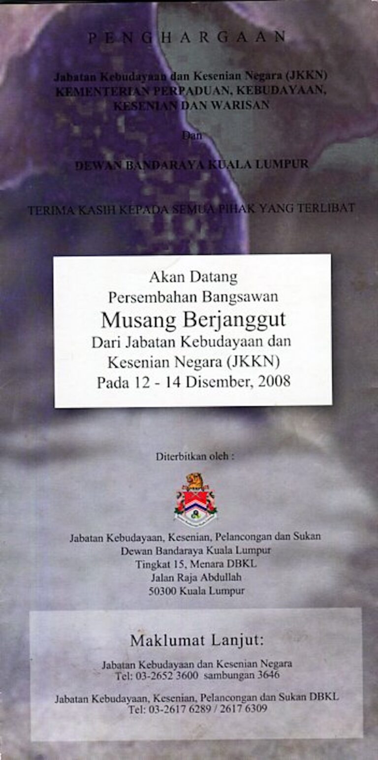 - Nama Kumpulan:Opera Sri Bandaraya, Dewan Bandaraya Kuala Lumpur, Jabatan Kebudayaan dan Kesenian Negara