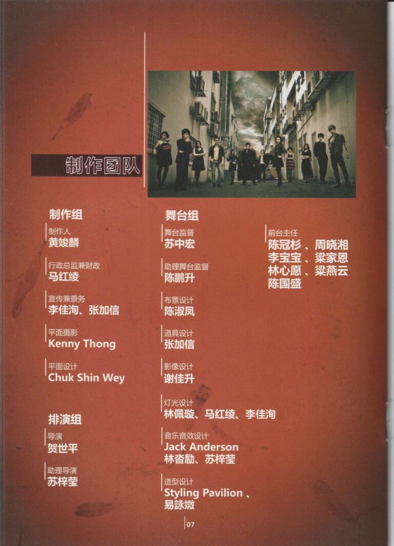 • Pengurus Pentas:Soh Chong Hong 蘇忠宏