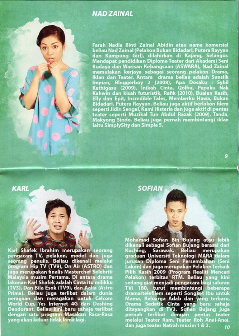 Izzue Islam, Jihan Muse, Nad Zainal, Karl Shafek Ibrahim, Sofian Bujang, Fazleena Hishamuddin, Nazurah Hanoom Hanafie