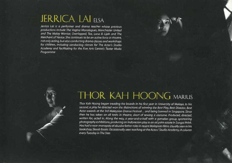- Lighting Designer:Mac Chan | Lighting Assistants: Helena Foo, Tengku Amalia