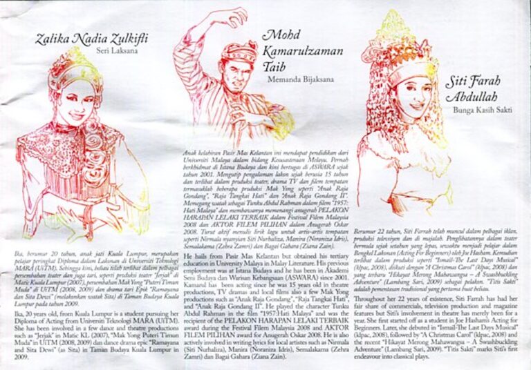 - Additional Designer:Juruteknik Penata Bunyi / Sound Designer Technician – Shafie Hisham Milai Juruteknik Penata Cahaya / Lighting Designer Technician – Sazali Sim Pereka Grafik / Graphic Designer – Joel Wong