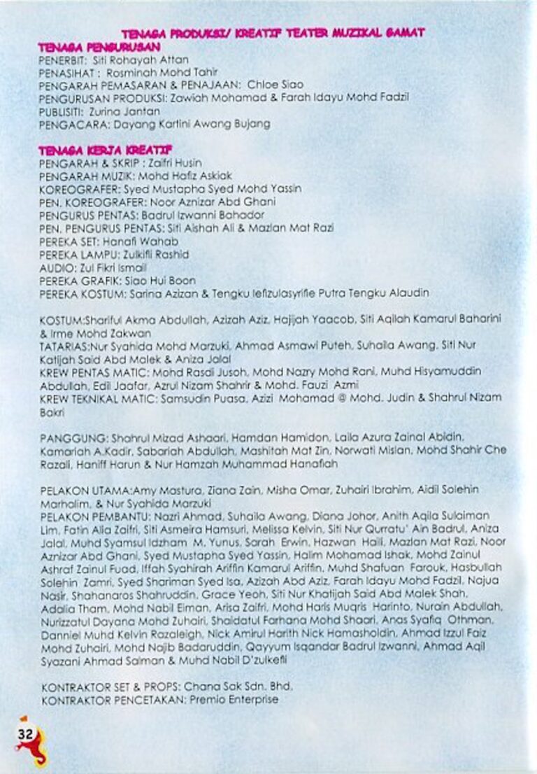 - Stage Crew:Mohd Rasali Jusoh, Mohd Nazry Mohd Rani, Muhd Hisyamuddin Abdullah, Edil Jaafar, Azrul Nizam Shahrir & Mohd Fauzi Azmi