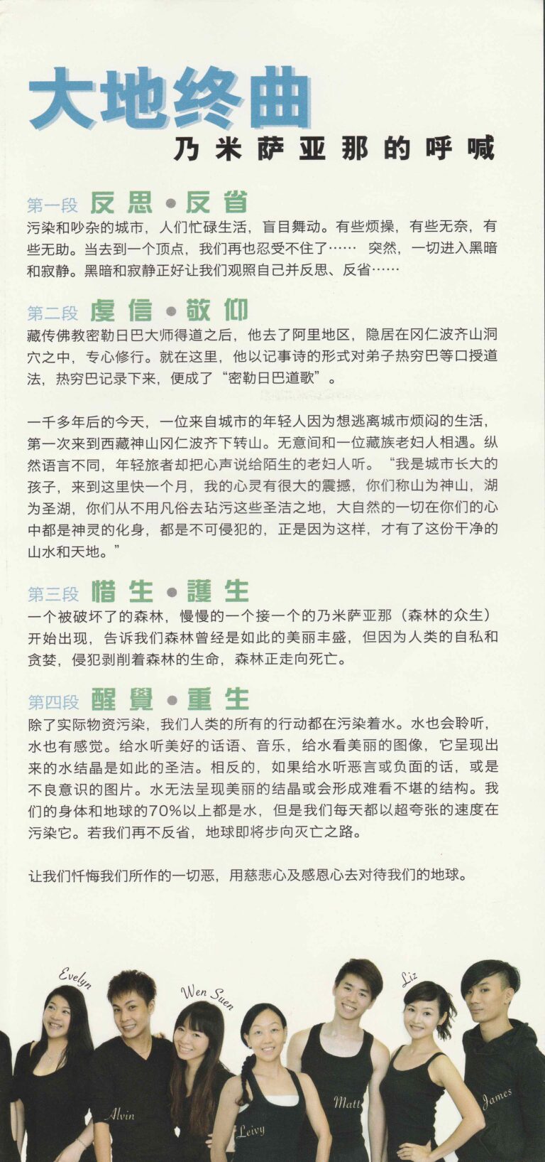 - Stage Crew:Bobo Sing 秦寶珍, Keilly Lim 林美嫻, Lee Kien Fei 李健輝, Lim Ang Swee 林安瑞