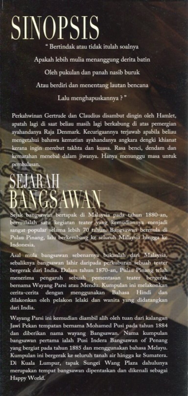 - Playwright:Adaptasi dari karya Shakespeare/ Adaptation of Shakespeare’s play
