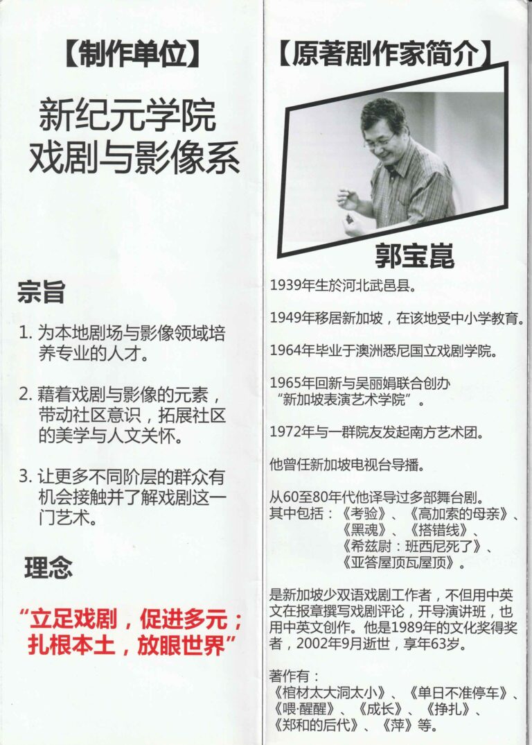 - Playwright:Kuo Pao Kun 郭寶崑 (Singapore)